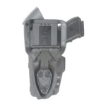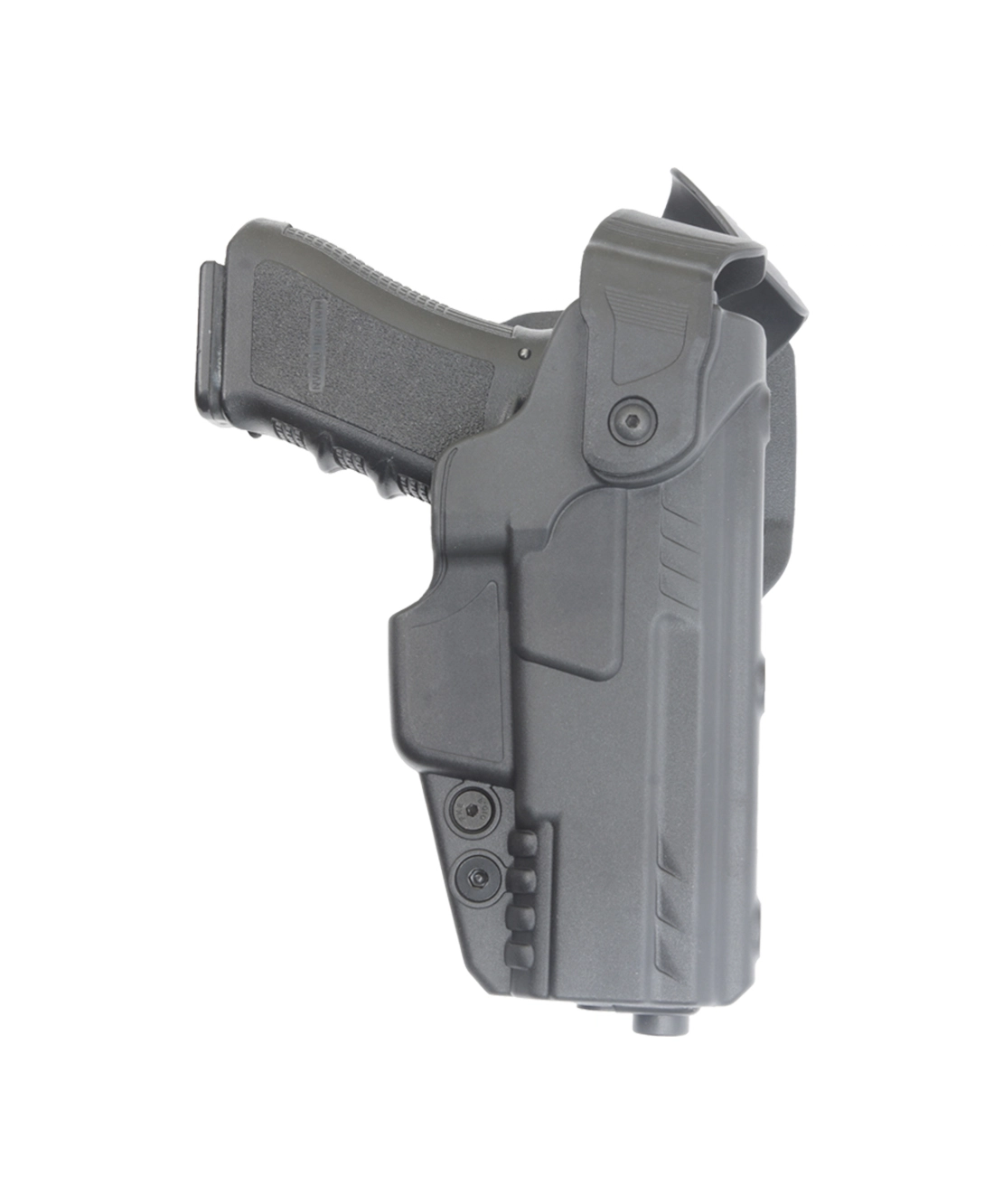 Nuestra funda de seguridad combina perfectamente el diseño, la seguridad y el rendimiento. Cuidadosamente diseñada por nosotros, la funda cuenta con un puente giratorio integrado que se desbloquea con la presión natural del pulgar al empuñar el arma. El mismo sistema incorpora también un protector que impide que el chaleco o la ropa interfieran en la salida del arma.