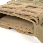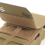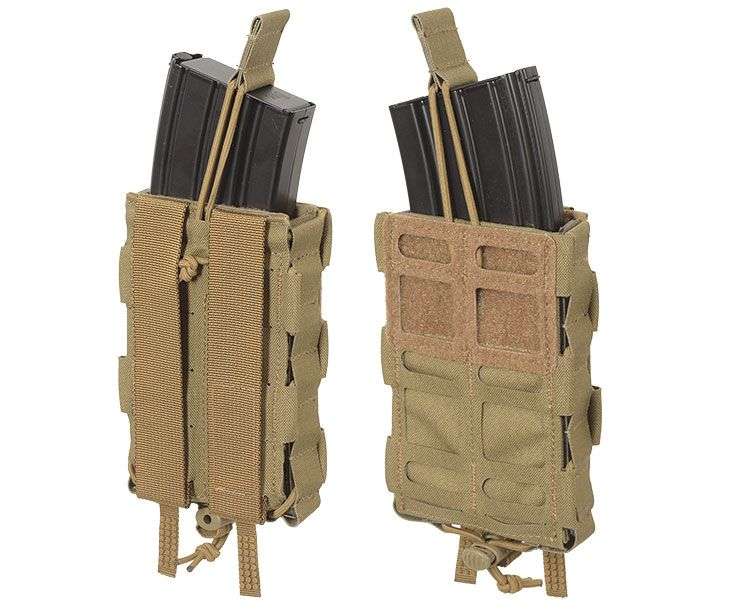 Portacargadores de alta calidad destinados para el transporte y la recarga rápida de un cargador de fusil de asalto. Configurable para usarse con tapa de velcro o con goma elástica.